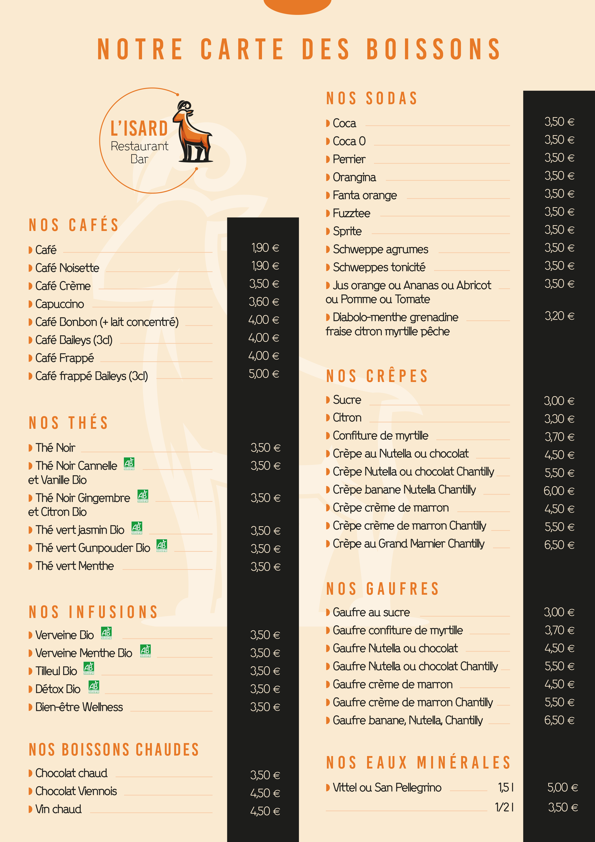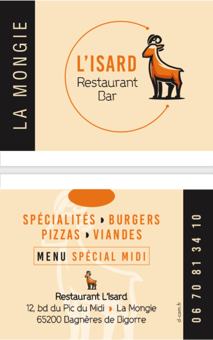 L'Isard - Création logo - Menu - Carte boissons - Cartes commercialesMenuMenu versoCarte boissonsCarte boissons versoCartes commerciales